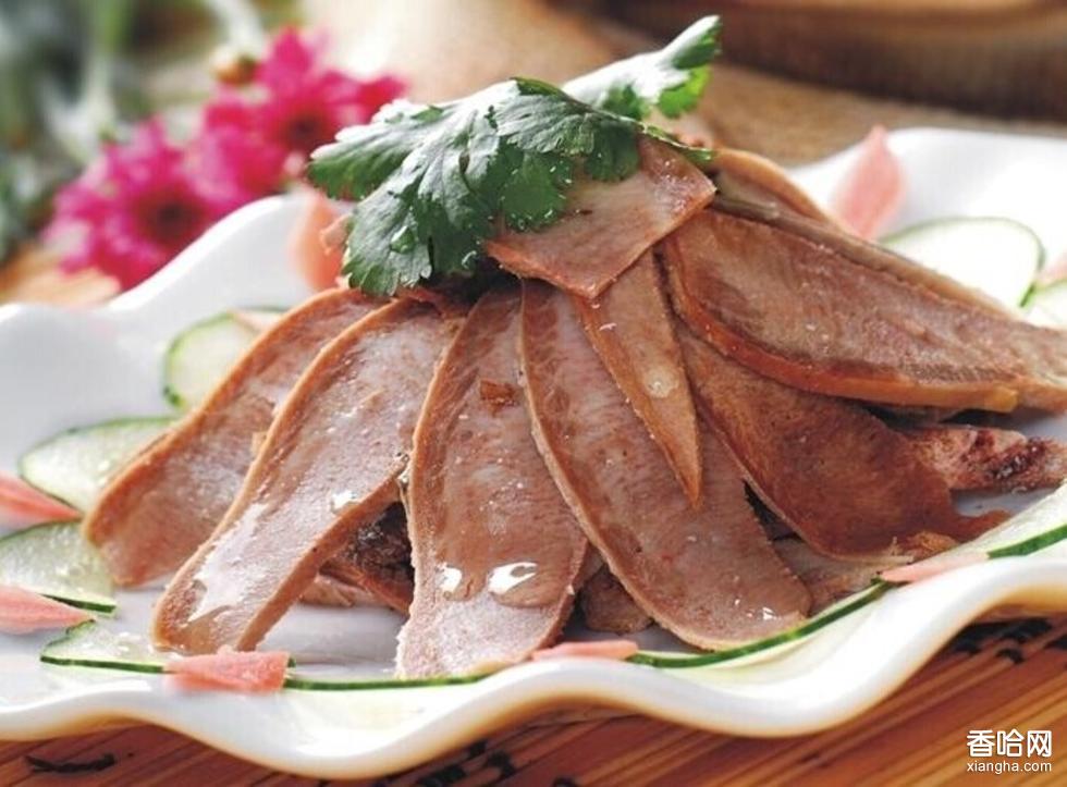 蒸牛舌是西藏著名的風味小吃。藏語音杰郎最。多見于拉薩等地。以牛舌肉為主料,經(jīng)煮蒸而成。