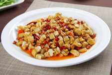 10、炒勻后,再加一點辣椒油,撒蔥末即可。