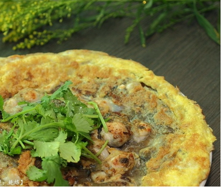 15、將蠔烙的底面也煎至金黃,取出裝盤(pán),撒上芫荽開(kāi)吃,喜歡重口味的朋友可以蘸著魚(yú)露食用。