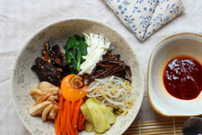 輔料:甜辣椒醬,香油,芝麻,烤肉醬,黃豆芽,菠菜,胡蘿卜,木耳,桔梗,角瓜,生菜,肉末,蕨菜。