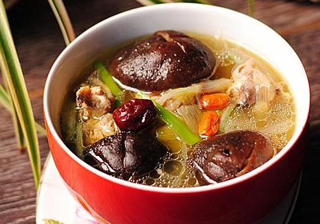 土雞腿2只,干香菇6朵,紅棗12粒,姜2片,酒1大匙,鹽1小匙。