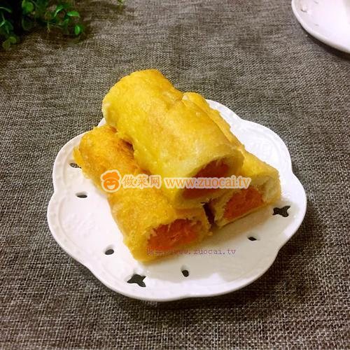 9.鍋中倒入適量油燒至六成熱時放入吐司卷,小火炸至表面金黃色即可撈出控油備用
