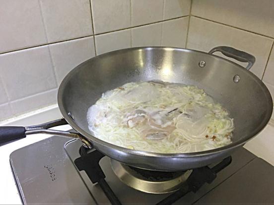 5.煮開(kāi)后入掛面(生鮮面)。