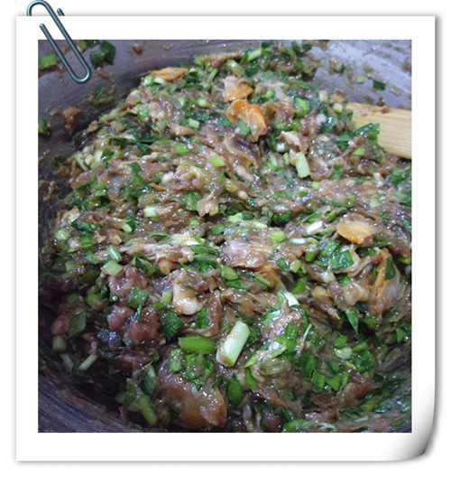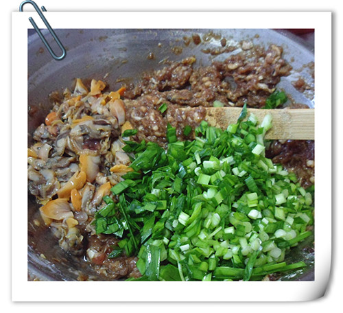 原料:鲅魚,麻蛤,韭菜,蔥姜,面粉,醬油,蠔油,料酒,白胡椒粉,鹽味精,香油。