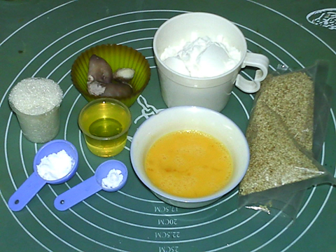 用料:玉米油40克,白砂糖35克,全蛋液10克,低筋粉97克,熟菱角肉25克,泡打粉1克,小蘇打0.5克,芝麻少許