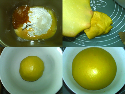1、將所有材料倒入面包機(jī),啟動(dòng)和面程序。攪拌至能拉出薄膜,放入碗中,進(jìn)行 基礎(chǔ)發(fā)酵。面團(tuán)長(zhǎng)大至兩倍。