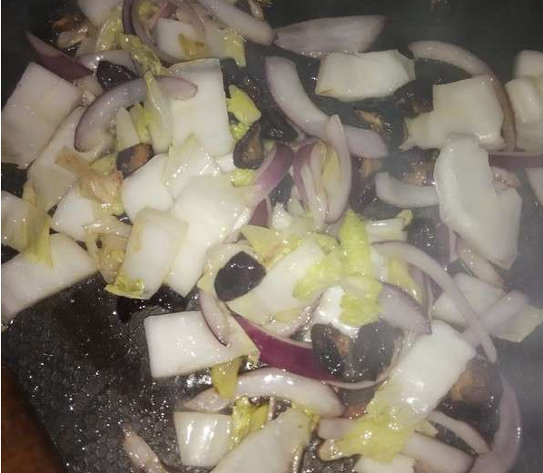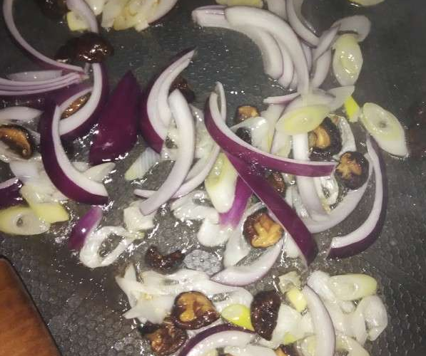 3.放油熱鍋先香菇大蔥洋蔥依次入鍋炒出香味(平時(shí)最喜歡聞到這個(gè)味道哈哈)