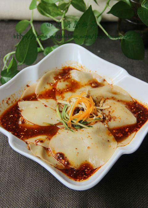 原料:水餃皮15張、油20g、精鹽1/4茶匙、陳醋適量、生抽適量、辣椒碎1/2茶匙