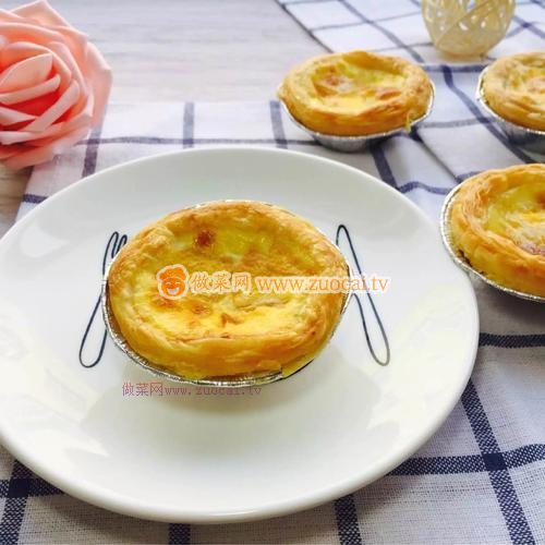 9.把蛋塔盤放到預熱好的烤箱里中層,上下火210度,烤25分鐘左右。