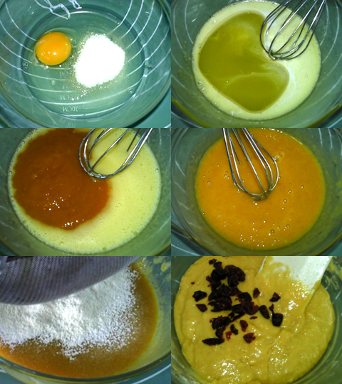 用料:芒果泥95克,細(xì)砂糖20克,玉米油20克,雞蛋1個(gè),低筋粉90克,牛奶10克,泡打粉1小勺,蔓越莓干15克