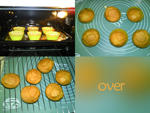 2、放入烤箱,中層,上下火180度,烤約20-30分鐘。表面金黃,出爐。立即脫模,置晾架上晾涼。