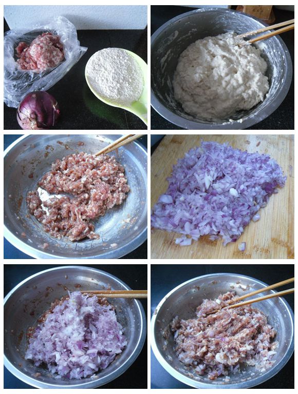 主輔料: 豬肉餡300、洋蔥100,面粉300。