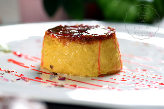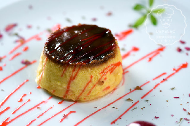 9、待焦糖凝固以后,緩緩倒入奶酪糊。