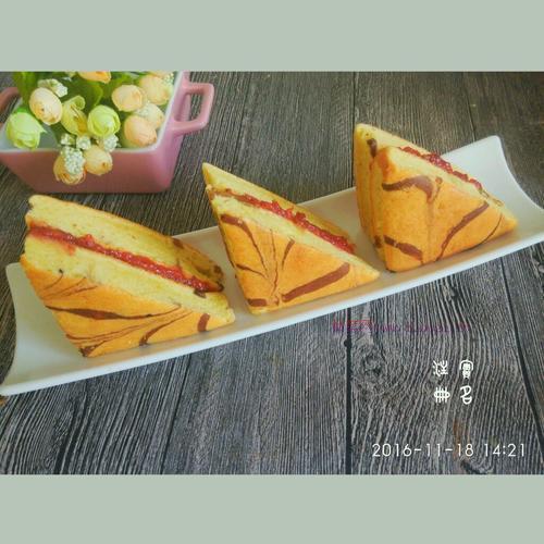 23.再切斜切成三角形,涂抹上草莓醬。