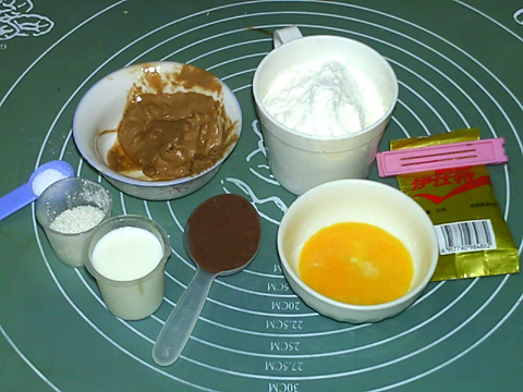 淡奶油38克,牛奶35克,細(xì)砂糖15克,鹽1克,蛋黃10克,蛋白3克,高筋粉100克,可可粉5克,干酵母2克,低筋粉適量
