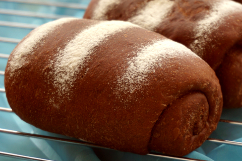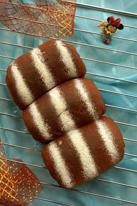 做小猴子蛋糕剩下些許可可奶油,索性就來個(gè)可可味的奶油面包,把這奶油用掉。