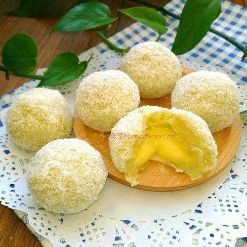 6.放入盤(pán)子里裹上一層椰蓉。