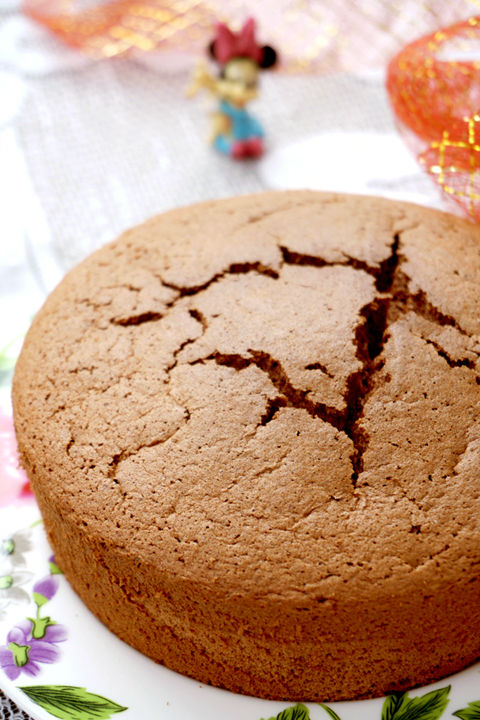 好像還從來沒做過可可的戚風(fēng),這次就來一個(gè)吧,為著某種目的。找了妃娟的方子,減量。仔細(xì)看時(shí),卻發(fā)現(xiàn),這個(gè)做法跟平日里習(xí)以為常的大不相同,牛奶和油居然是要混合加熱來用的。諸事繁雜,不想在未知事件上耽誤時(shí)間。于是,依然是妃娟的方子,只是移植了慣常的做法。效果也還是不錯(cuò),雖然表面有開裂。好像再也沒烤出過不開裂的戚風(fēng)了。。。。。