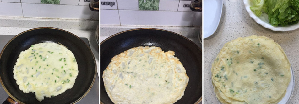 4這樣子一份夾心的雞蛋餅就完成了。