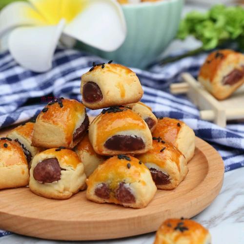 低筋面粉(145g) 紫薯餡(250g) 無(wú)鹽黃油(100g) 糖粉(30g) 全蛋(40g) 奶粉(40g) 蛋黃(一個(gè))