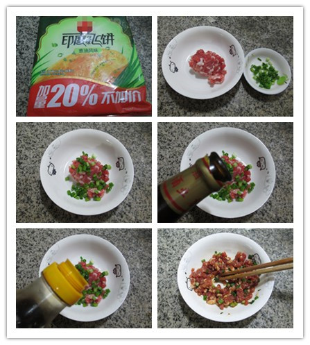 做法:(1)在肉末中擱入香蔥,加適量的料酒、加適量的生抽調(diào)味拌勻。