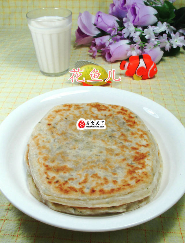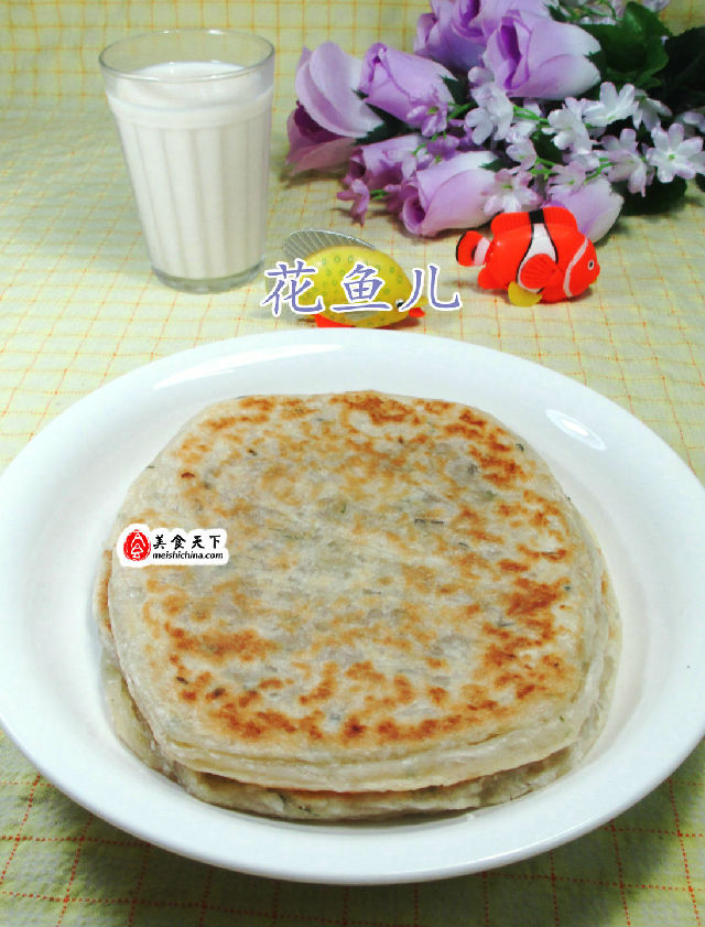 (4)然后,將做好的肉餡飛餅擱入電餅鐺中煎至兩面金黃,即成。