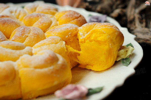 用南瓜做成的菊花椰蓉面包,不但養(yǎng)眼,營(yíng)養(yǎng)也很豐富。南瓜含有豐富的胡蘿卜素和 維生素C,可以健脾,預(yù)防 胃炎,防治 夜盲癥,護(hù)肝,使皮膚變得細(xì)嫩,并有中和 致癌物質(zhì)的作用。黃色果蔬還富含兩種維生素A和D;維生素A能保護(hù)胃腸黏膜,防止胃炎、胃潰瘍等疾患發(fā)生;維生素D有促進(jìn)鈣、磷兩種礦物元素吸收的作用,進(jìn)而收到壯骨強(qiáng)筋之功,對(duì)于兒童佝僂病、青少年近視、中老年 骨質(zhì)疏松癥等常見(jiàn)病有一定預(yù)防之效。