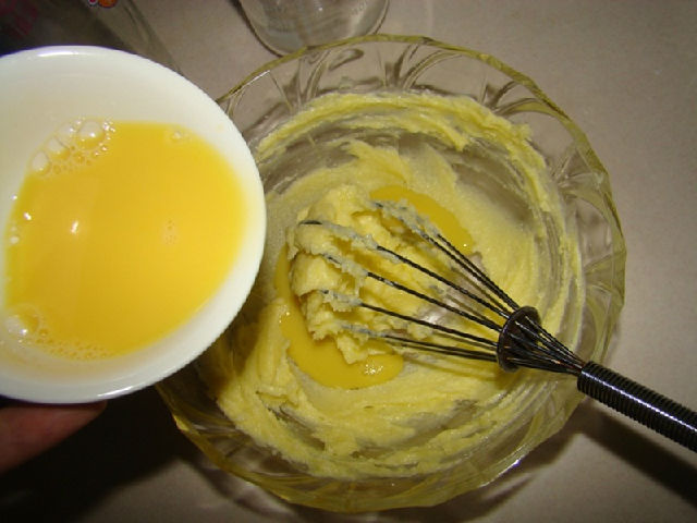 3,分次加入蛋液攪拌均勻。