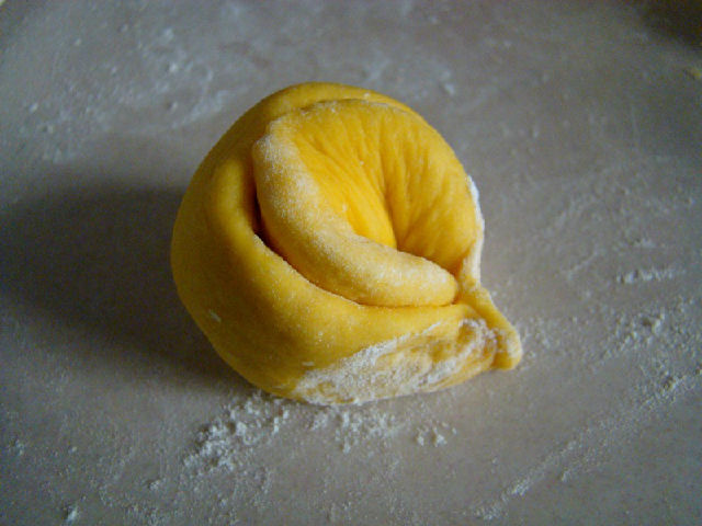 12,對(duì)折包起來(lái),再把兩端捏合在一起。