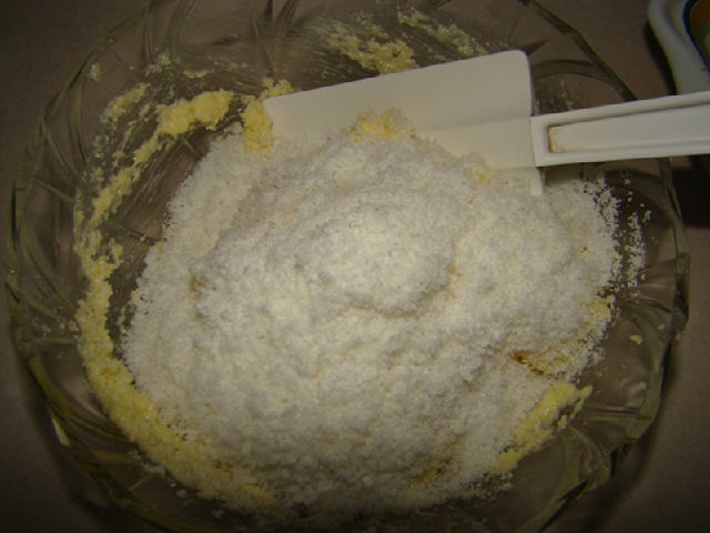 4,倒入椰蓉拌勻。