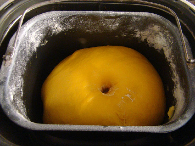 8,把所有面團(tuán)原料放入面包機(jī)內(nèi)攪拌至擴(kuò)展階段。