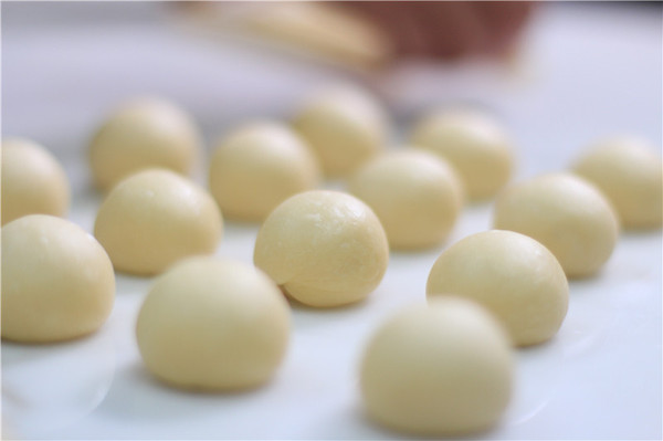 3、將面團(tuán)分成每個(gè)10g的小團(tuán)子,然后搟成細(xì)長(zhǎng)條