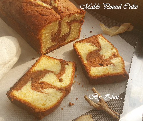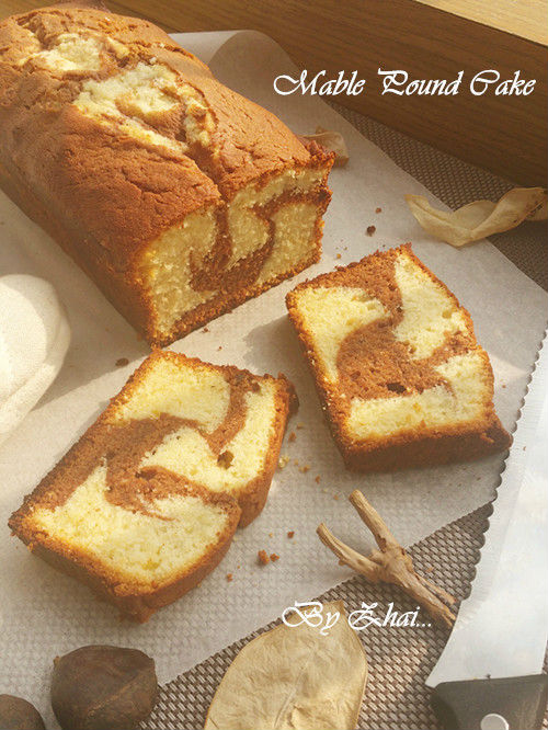 8、將原味面糊與巧克力面糊交叉放入土司模具,表面抹平。
