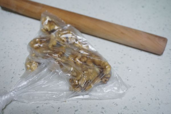 吃貨的心態(tài)總是陽光積極的,等到今天一堆干果到家后,我就開啟了迅速消滅面粉的過程。想著周末老母親過來,立馬心中就有了盤算,老北京人買糕點都愛去稻香村,去了少不了買山楂鍋盔、薩其馬,還有幾塊酥掉渣兒油燦燦的桃酥。桃酥做法簡單,也不需要面團的發(fā)酵,香酥的核桃搗碎,揉進面粉中,烘烤的時候就飄出陣陣香味兒。