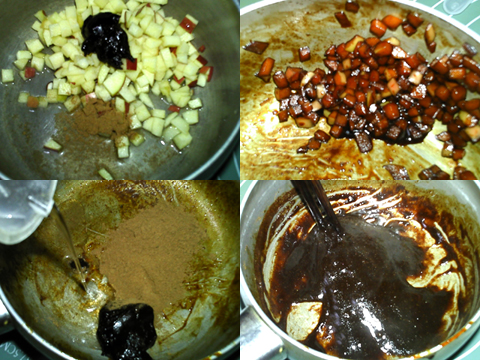 蘋果果粒:蘋果1/4個(gè),紅糖1/2大勺,肉桂粉1/4小勺,水15毫升