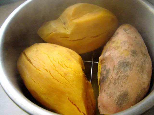 2,黃心紅薯蒸熟。