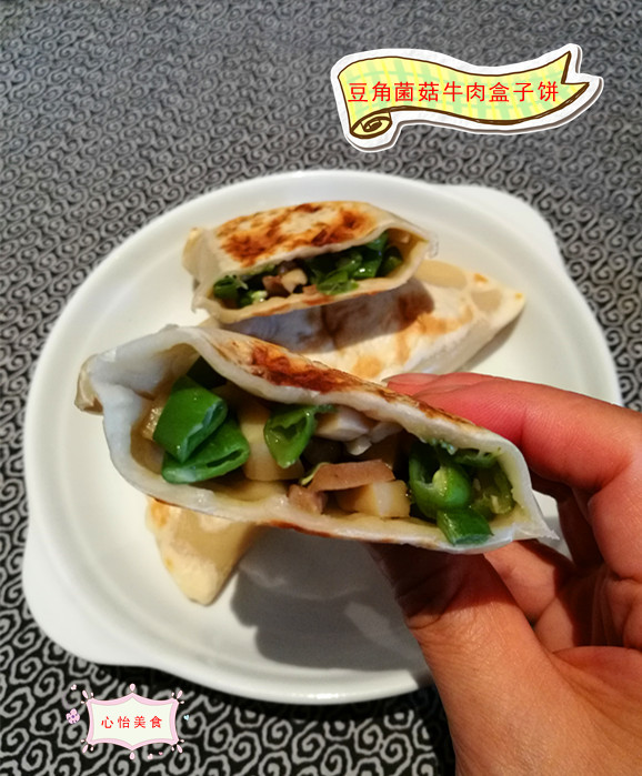 8、平底鍋加熱,加入少許油,將做好的盒子放入鍋中,烙至兩面金黃即可,如果餅皮稍厚,可以淋入少許水,蓋上鍋蓋燜一會就可以了。
