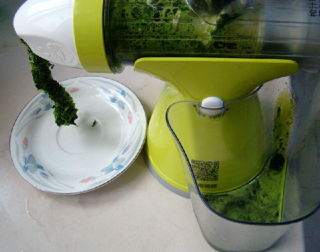 2,用原汁機榨出100克菠菜汁。
