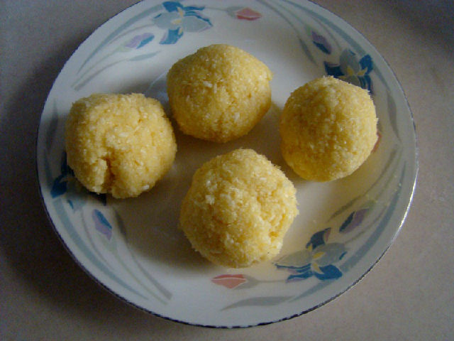 5,椰蓉餡料:黃油軟化后與其它椰蓉原料混合均勻,分成4份。