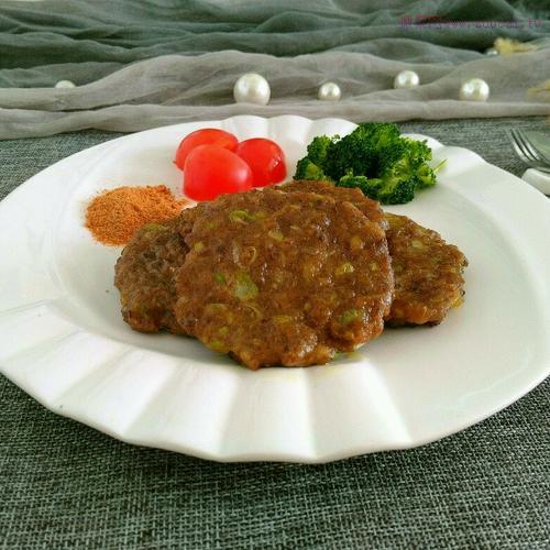 19.烤盤加熱,放適量的油,把肉糜均勻攤平,大小隨自己喜好。