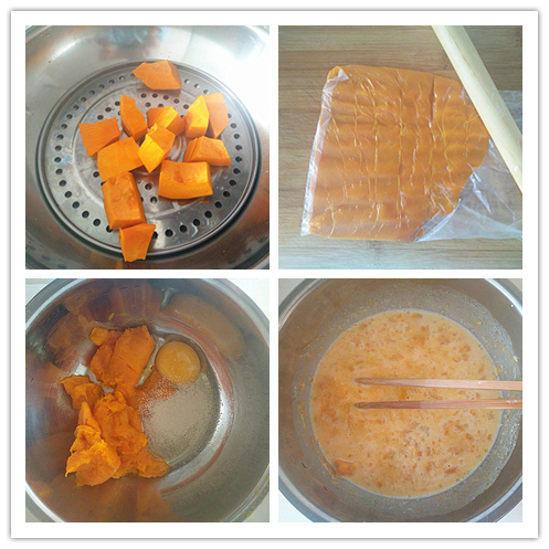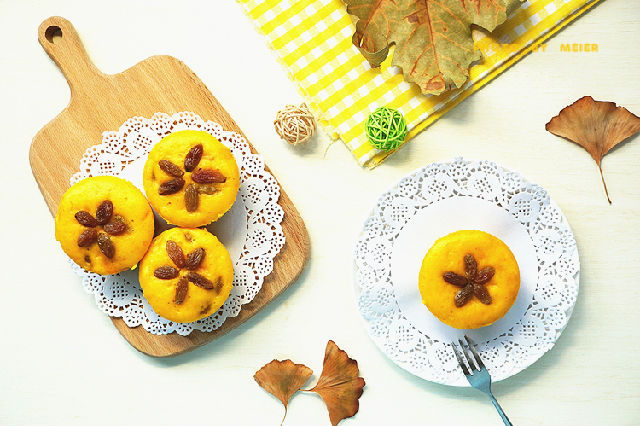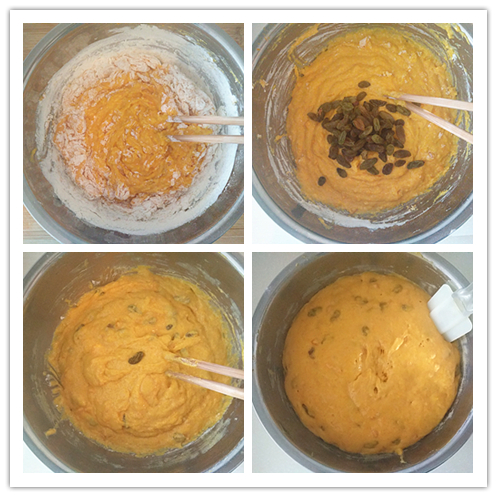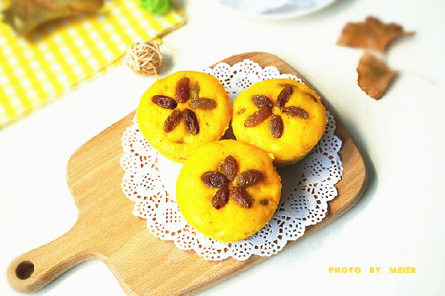 原材料:南瓜 雞蛋 牛奶 葡萄干 白糖