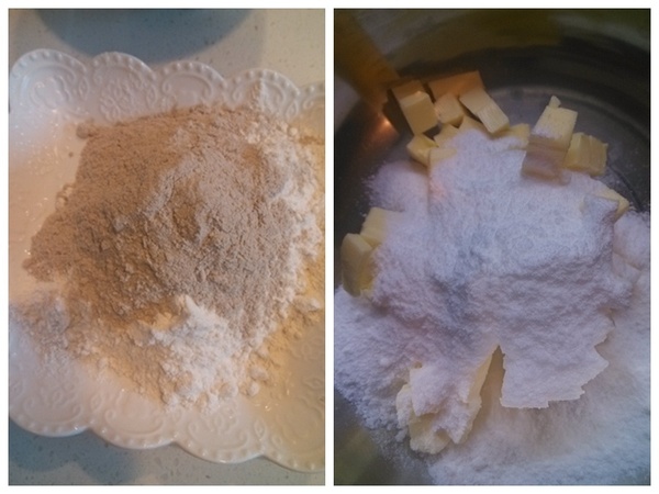 1、蕎麥粉和低筋粉混合均勻過篩然后加入泡打粉混合均勻;2、黃油切成小塊軟化,加入糖粉開始打發(fā);