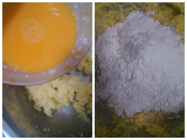 3、分多次少量加入雞蛋;4、打發(fā)完成之后加入所有的粉類;