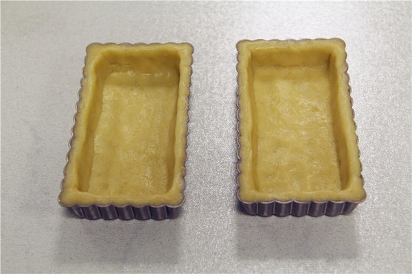 5、冷藏好的面片取出鋪在派盤里,除去多余的派皮,使派皮完全的貼合派盤