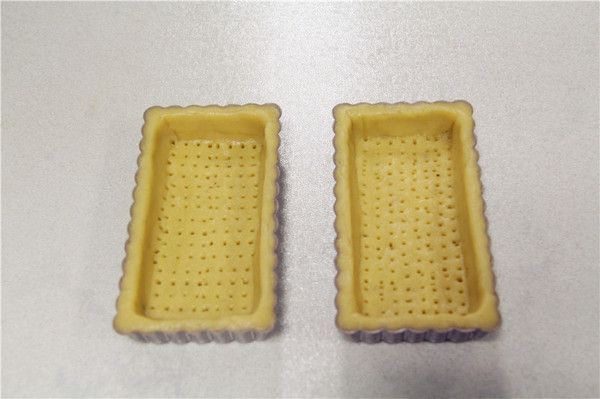 6、用叉子在派皮底部叉上一些孔,防止派皮烤的時(shí)候鼓起;然后放入預(yù)熱好的烤箱中層,上下火180度,烤20-25分鐘,直到派皮表面金黃色