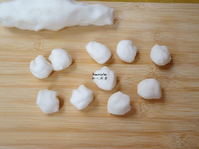 6.多次揉面,最后揉成長(zhǎng)條,分均勻的小團(tuán)。