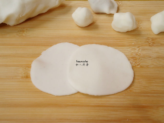 7.把小團(tuán)搟薄,水晶餃子皮就好;