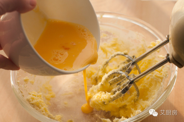 1.黃油室溫軟化,然后用打蛋器打發(fā)成羽狀。