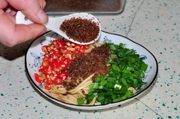 12、舀上干煵牛肉臊子即成