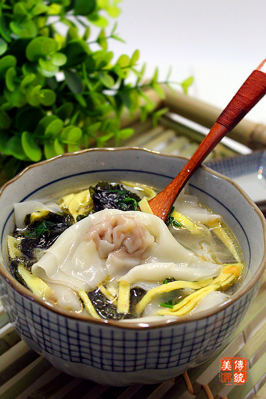 第十步:將餛飩連湯一起盛入碗中,然后再撒少許蝦皮,雞蛋條,最后淋少許香油即可。
